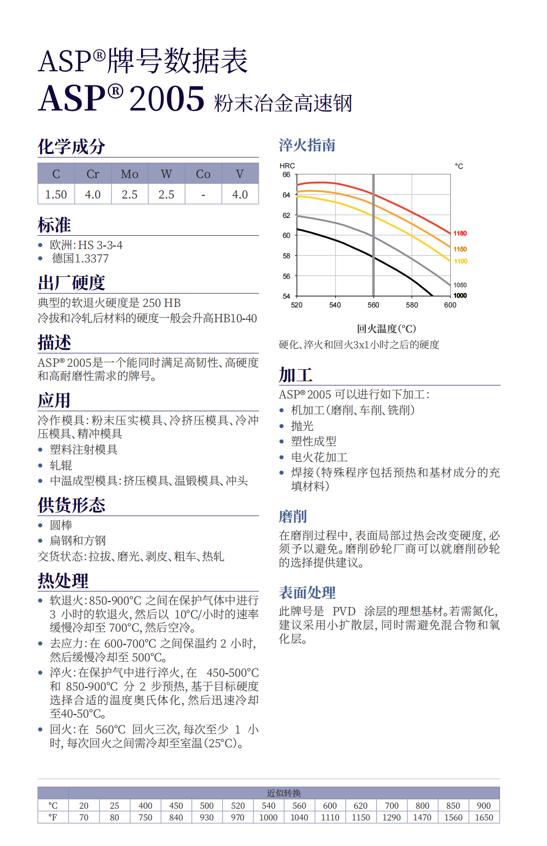 • ASP 2005粉末冶金高速鋼